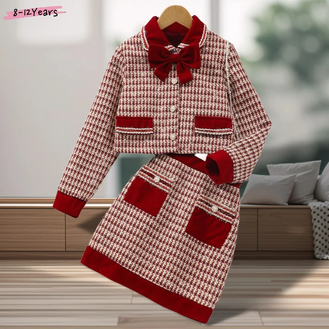 This stylish children’s clothing set is designed for girls who love a sweet and elegant look. Featuring a long-sleeved, single-breasted top paired with matching bottoms, it offers a comfortable fit and a refined appearance, making it suitable for everyday wear and special casual occasions.